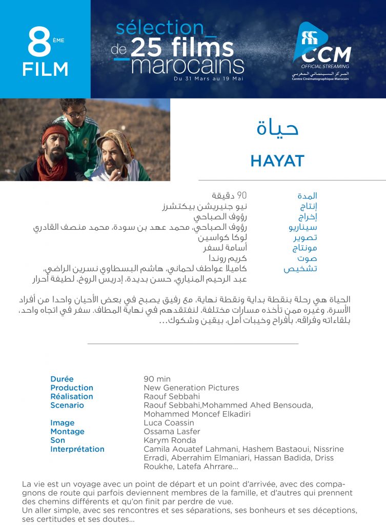Maroc- « Hayat », 8ème film marocain programmé par le CCM du 14 au 15.04.2020